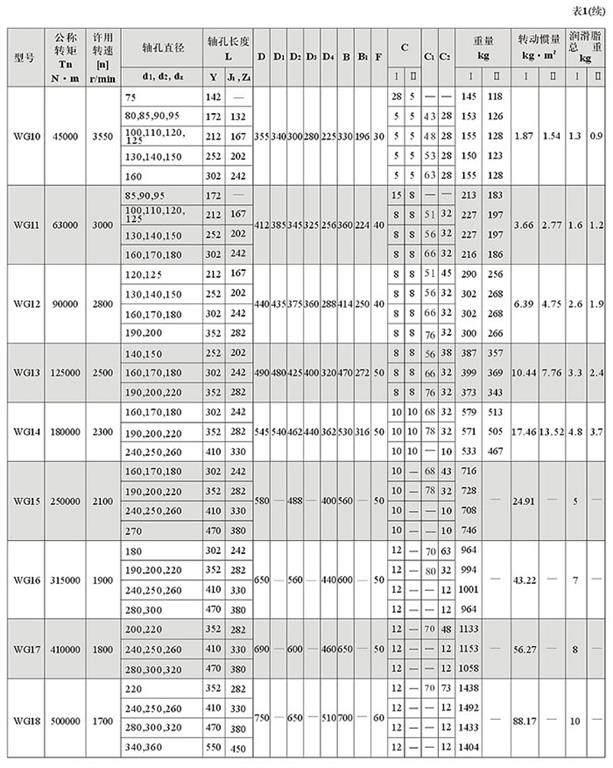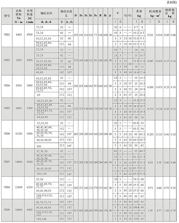 簡介WG型鼓形齒式聯(lián)軸器的參數(shù)